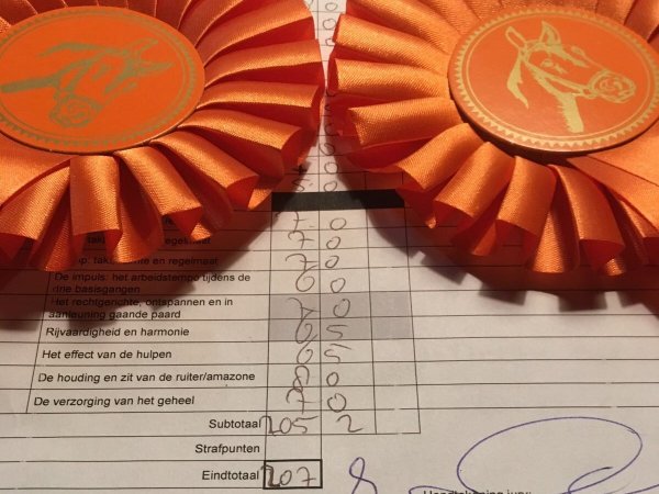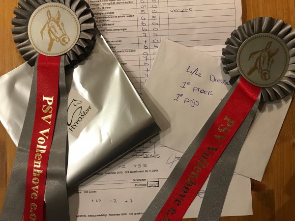 Zondag 17 december 2017 vertrokken Sanne en Jasper voor een dressuurproef in de klasse L1 te Emmeloord. Met deze ene proef wisten ze een superscore te rijden van maar liefst 200,5 punten. Dit leverde hun de 1e prijs op.