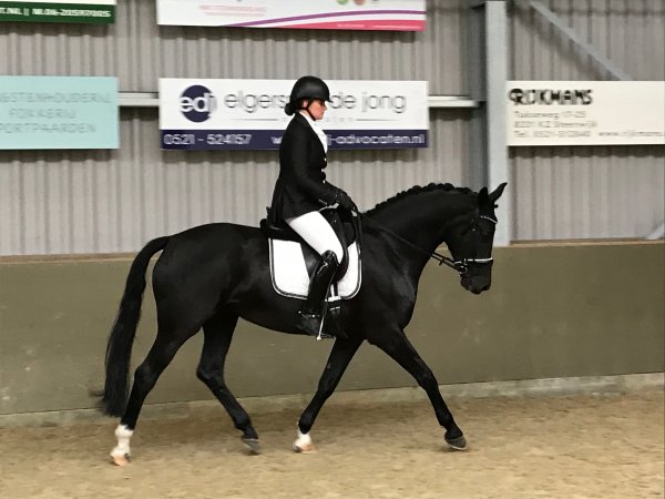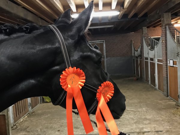 Dinsdag 22 november j.l. hebben Hirrieane (Corland x Cardento) & Sanne voor het eerst in de wedstrijdring mogen betreden. De combinatie wist een goede score te behalen van 188,5 & 190 pnt. wat hen een 1e prijs opleverde.