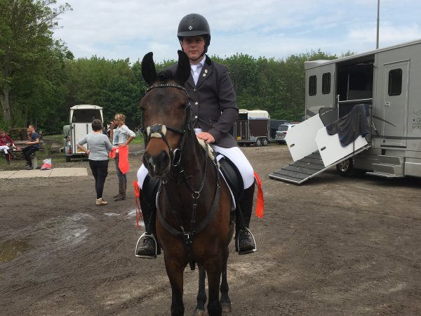 Marieke behaalde met haar pony Diamond Lady in de klasse B dressuur 182 & 197 punten. Helaas (net) niet genoeg voor een prijs. Wel 2 keurige proeven gereden.