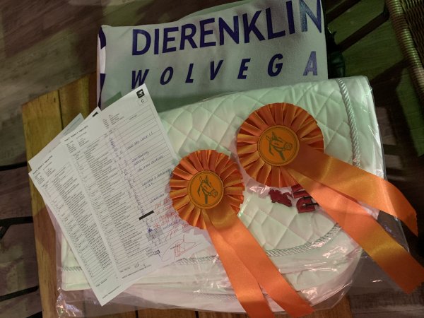 Wederom wisten Sanne en Futurella een mooi resultaat neer te zetten tijdens een dressuurwedstrijd in Vollenhove. De eerste proef in een voor Futurella "nieuwe" bak ging wat twijfelachtig. Ze zag toch nog wel wat spoken aan de muur. Toch beloonde de jury de proef met 193,5 punten wat goed was voor een 2e prijs. . Tijdens de 2e proef was ze wat realaxter en gingen de punten omhoog…….208 punten en voor deze proef een 1e prijs.
