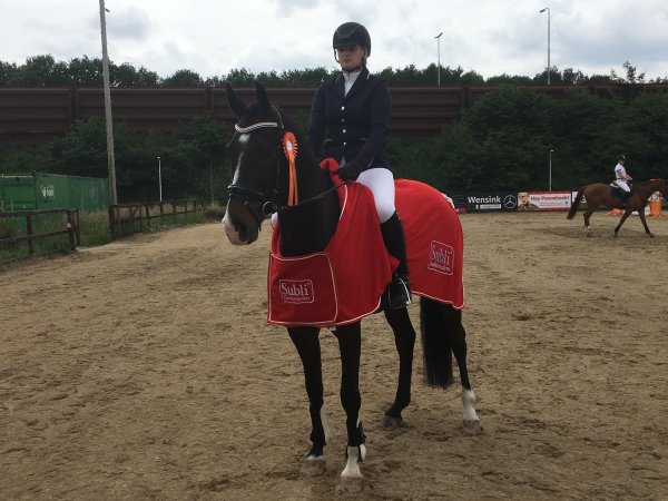 Zaterdag 10 juni j.l. werd in Zwolle het Peperbus springconcours verreden voor paarden. Sanne verscheen hier met Gamble aan de start. Het eerste rondje leverde deze combinatie de 1e prijs op met een score van 75,5 voor de stijl. Tijdens het 2e rondje wisten ze deze punten nog wat hoger te krijgen wat resulteerde in wederom de 1e prijs ditmaal met 81 stijlpunten. Ze kregen een fraaie statiedeken aangeboden door Subli paardenvoeders.