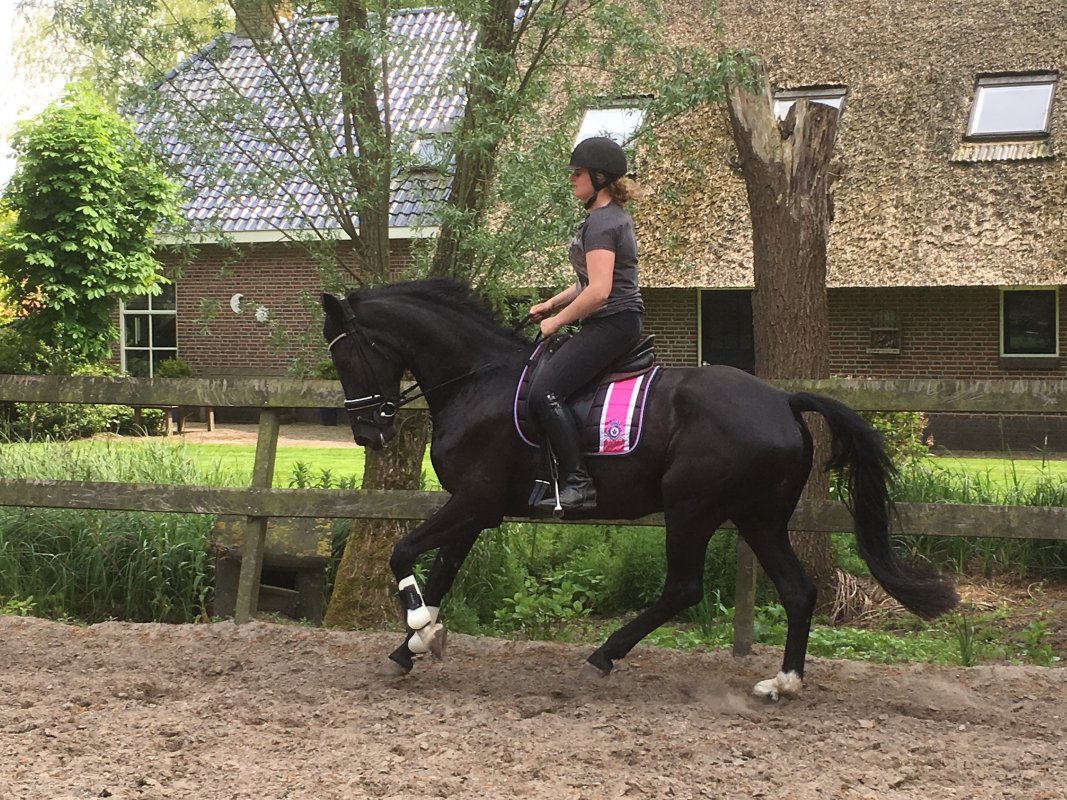 Deze 4-jarige merrie is door ons aangekocht om mee te gaan rijden & fokken. In 2017 heeft ze de EPTM test gedaan en mocht met het slagen van deze test tevens het elite predicaat op haar naam schrijven. In het voorjaar van 2018 heeft ze haar 1e (hengst) veulen op de wereld gezet. Deze staat sinds enkele weken in de opfok en heeft Sanne de wedstrijden weer succesvol opgepakt. Deze combinatie start momenteel in de klasse Z1.