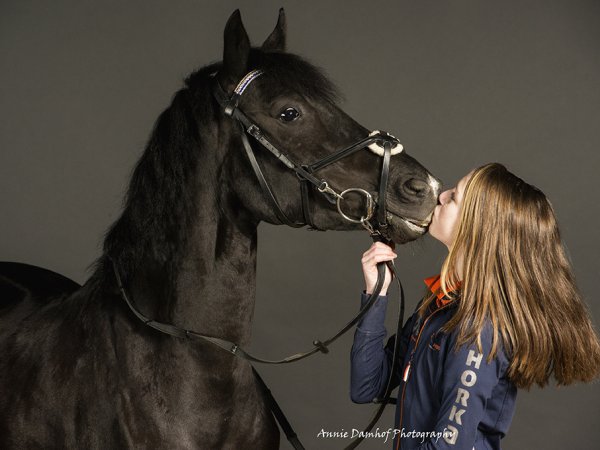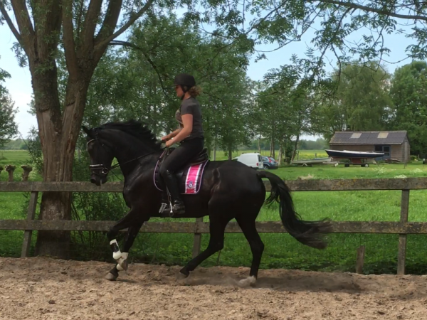 Sanne hier aan het trainen met Izzie. Haar eerste paard met dressuurbloed. Vele jaren heeft ze de jonge (spring) nafok getraind en op wedstrijden uitgebracht. Met Izzie heeft ze al vele prijzen weten te bemachtigen.In 2018 heeft Izzie een veulen gehad en een poosje van haar "zwangerschapsverlof" mogen genieten. Op dit moment rijden ze in de klasse M1 dressuur. Daarnaast werkt ze nog 32 uur bij fietsenfabrikant Cortina in Zwolle.