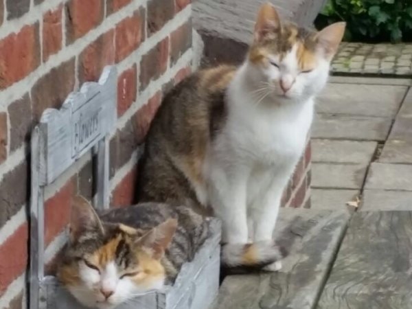 Dit zijn 2 van de ongeveer 10 poezen die er rondlopen om het ongedierte in de hand te houden.